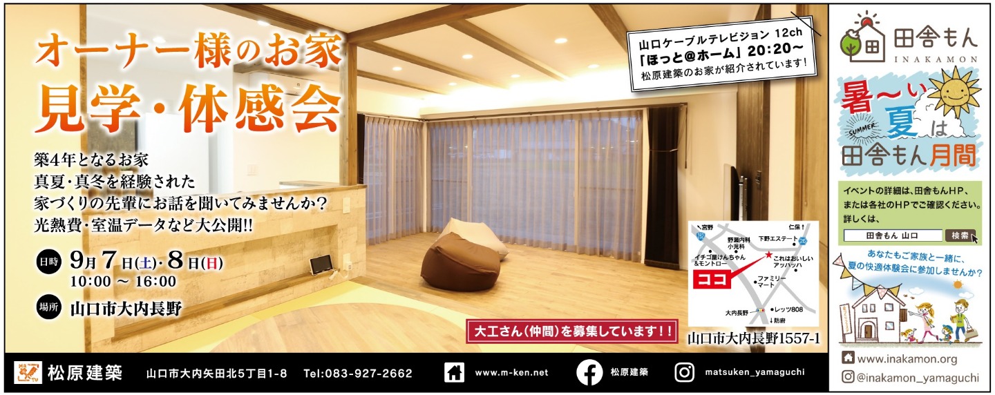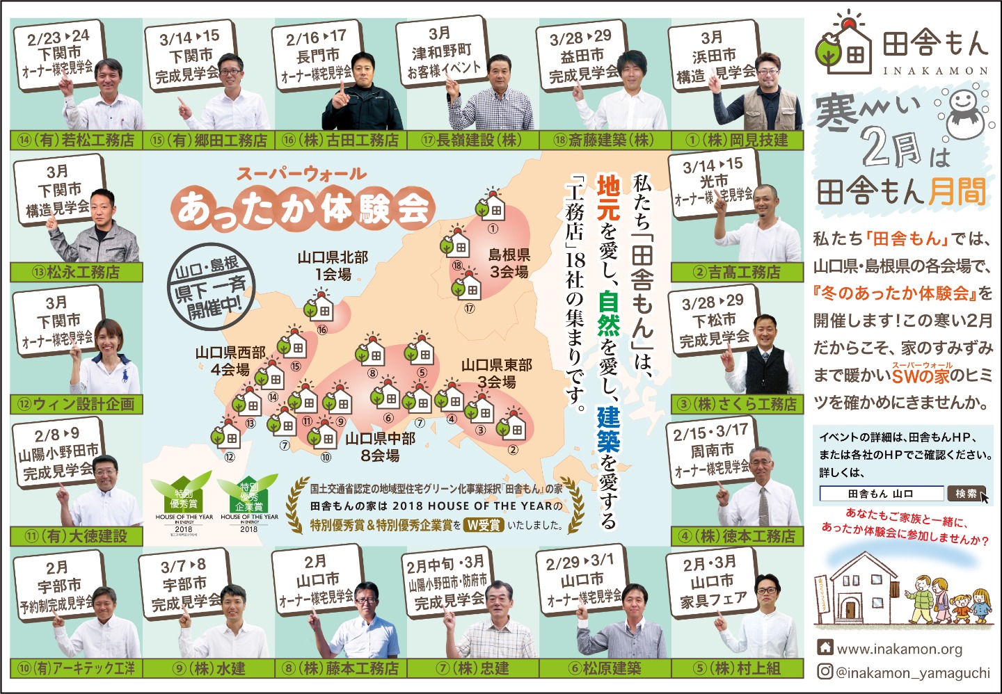 山口県・島根県西部の地場の工務店17社が運営するグループ「田舎もん」が山口市で4社合同セミナー+見学会を開催します!